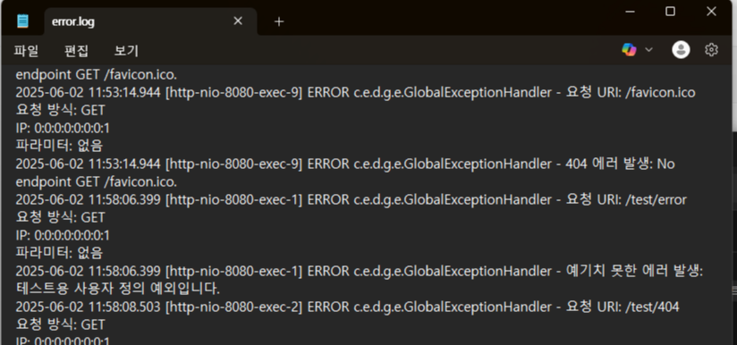 <!-- ์๋ฌ ์ ์ฉ ๋ก๊ทธ ํ์ผ (์์ธ ํธ๋ค๋ฌ ์ ์ฉ) -->