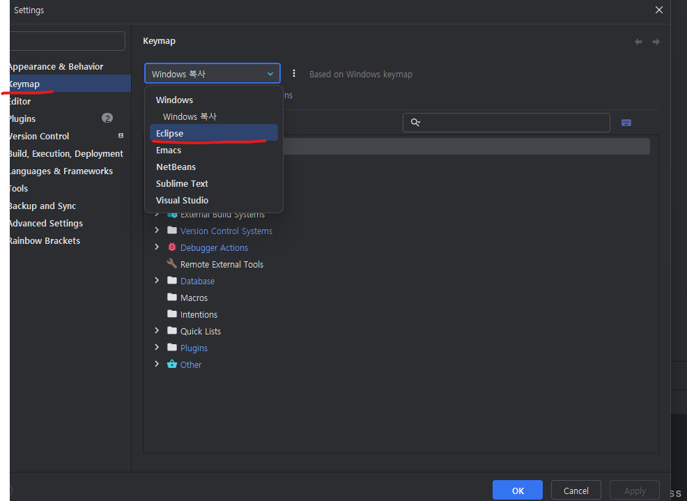 # intellij(์ธํ ๋ฆฌ์ ์ด) ๋จ์ถํค ์ดํด๋ฆฝ์ค๋ก ๋ณ๊ฒฝํ๋๋ฒ category ๐IDE/intelliJ 2025. 7. 3. 12:50 by ๋ญ์ง๋ง ๋ฐ์ํ 1. file -setting ํด๋ฆญ 2.keymap ์ ํ ํ ์ ๋ ํธ๋ฐ์ค์์ eclipse ์ ํ ๋ ๋ฐ์ํ ๊ณต์ ํ๊ธฐ ๊ฒ์๊ธ ๊ด๋ฆฌ ๐์์ด๋ ธํธ '๐IDE > intelliJ' ์นดํ ๊ณ ๋ฆฌ์ ๋ค๋ฅธ ๊ธ # ์ธํ ๋ฆฌ์ ์ด .properties ํ์ผ ํ๊ธ ๊นจ์ง ํด๊ฒฐ๋ฐฉ๋ฒ (0) 2025.07.08 # ์ธํ ๋ฆฌ์ ์ด(intelliJ) - ์๋จ๋ฉ๋ด(ํด๋ฐ) ๋ณด์ด๊ฒ ๊ณ ์ ์ํค๋ ๋ฐฉ๋ฒ (2) 2025.07.03 # ์ธํ ๋ฆฌ์ ์ด maven settings ํ์ผ ๊ฒฝ๋ก ์ค์ (1) 2025.06.10 # ์ธํ ๋ฆฌ์ ์ด - ํ๋ก์ ํธ ์ฐฝ ์ฌ๋ฌ๊ฐ ์ด๊ธฐ (0) 2025.04.22 # intelliJ - Mapper ์ธํฐํ์ด์ค์์ xml ๋ฐ๋ก ์ด๋ํ๊ธฐ (0) 2025.04.03 ๋๊ธ , ์ฎ์ธ๊ธ