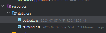 문제없이 실행하면 output.css가 자동 생성되면서 tailwind 클래스들이 다 포함된다.