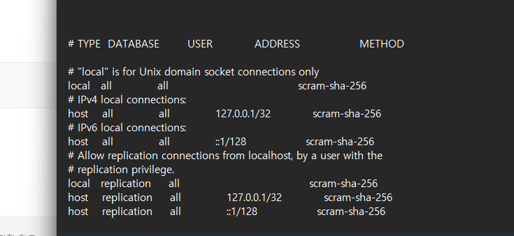์ง๊ธ ํ์ฌ ์๋ฒ์์ (DB ๊น๋ ค์ ธ์๋ ์๋ฒ) ์์๋ scram-sha-256 ์ธ์ฆ ๋ฐฉ์์ ์ฌ์ฉํ๊ณ ์๋๋ฐ,