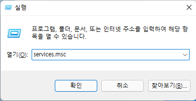 win + R๋ฒํผ์ด๋ ์คํ์ฐฝ์ ์คํํด services.msc๋ฅผ ์ ๋ ฅํ๊ณ ์ํฐ๋ฅผ ๋๋ฅธ๋ค.