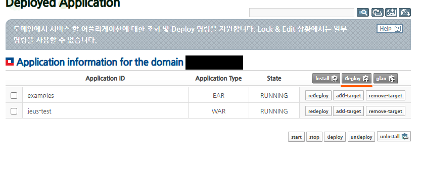 ๊ทธ๋ฐ๋ค์ ํ์ธ๋ฒํผ์ ๋๋ฅด๋ฉด ์ ์์ ์ผ๋ก ๋ฐฐํฌ๊ฐ ๋์ด ์์ ์ฌ์ง์ฒ๋ผ test-jeus๊ฐ์ ๋ชฉ๋ก์ผ๋ก ๋ฌ๋ค.