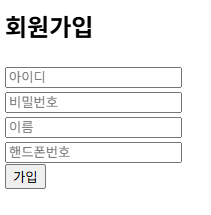 <input type="text" name="phone" placeholder="ํธ๋ํฐ๋ฒํธ"><br/>