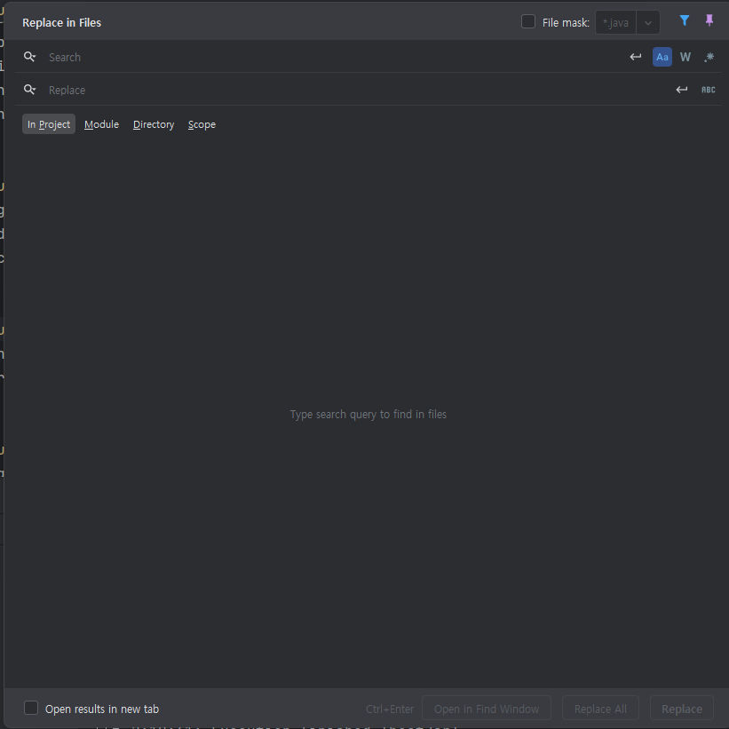 Edit - Find - Replace in Files...๋ฅผ ์ ํํ ํ