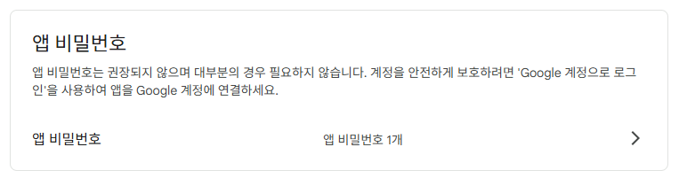- ์ฑ ๋น๋ฐ๋ฒํธ(App Password)๋ฅผ ๋ฐ๊ธ๋ฐ์ ๊ฒ